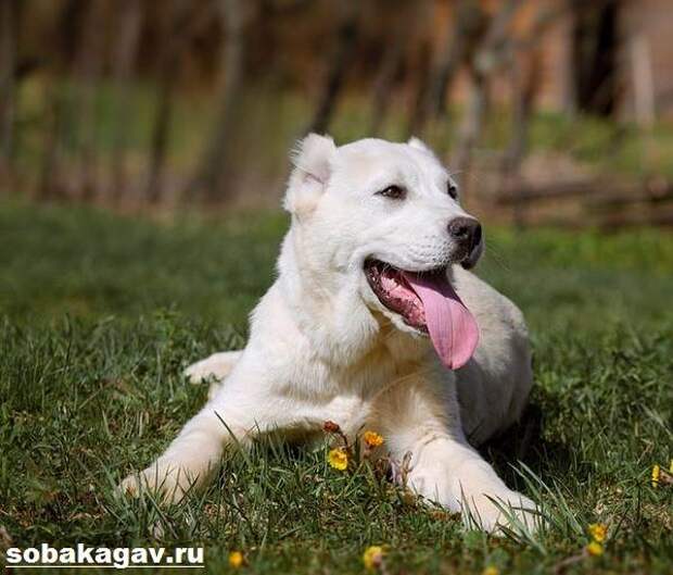 — Шерсть и окрас. Шерстяной покров у собаки густой. Волос жесткий, плотный, однородный. Шерсть равномерно располагается по торсу, за исключением ног и гривы. У Алабаев длинная холка, но короткие волосы на лапах. Масть может быть любой, за исключением коричневого, оранжевого, голубого цвета.